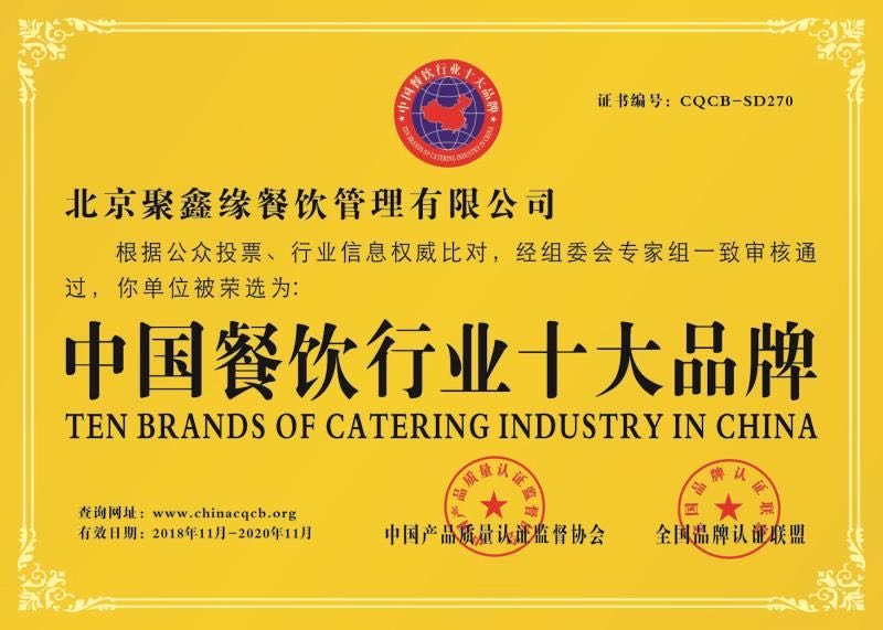 北京聚鑫緣餐飲管理有限公司是由目前餐飲界領軍人物,全國飯店業(yè)高級評委、國家級技能競賽裁判員、高級營養(yǎng)配餐師、2005年第三屆國際食神爭霸賽個人金獎、銀獎得主、中國烹飪大師,張寶田先生創(chuàng)辦,注冊資金:3888萬元,北京市政府采購定點服務單位,公司成立以來相關(guān)業(yè)務已覆蓋全國部分城市。本公司是國家有關(guān)部委批準建立的以管理與經(jīng)營各企事業(yè)、大中專院校餐廳、機關(guān)、食堂承包托管、酒店酒樓人才勞務輸出、前期策劃籌建、餐飲管理咨詢、廚房設備規(guī)劃安裝、糧油及原材料配送等綜合性后勤服務機構(gòu)。